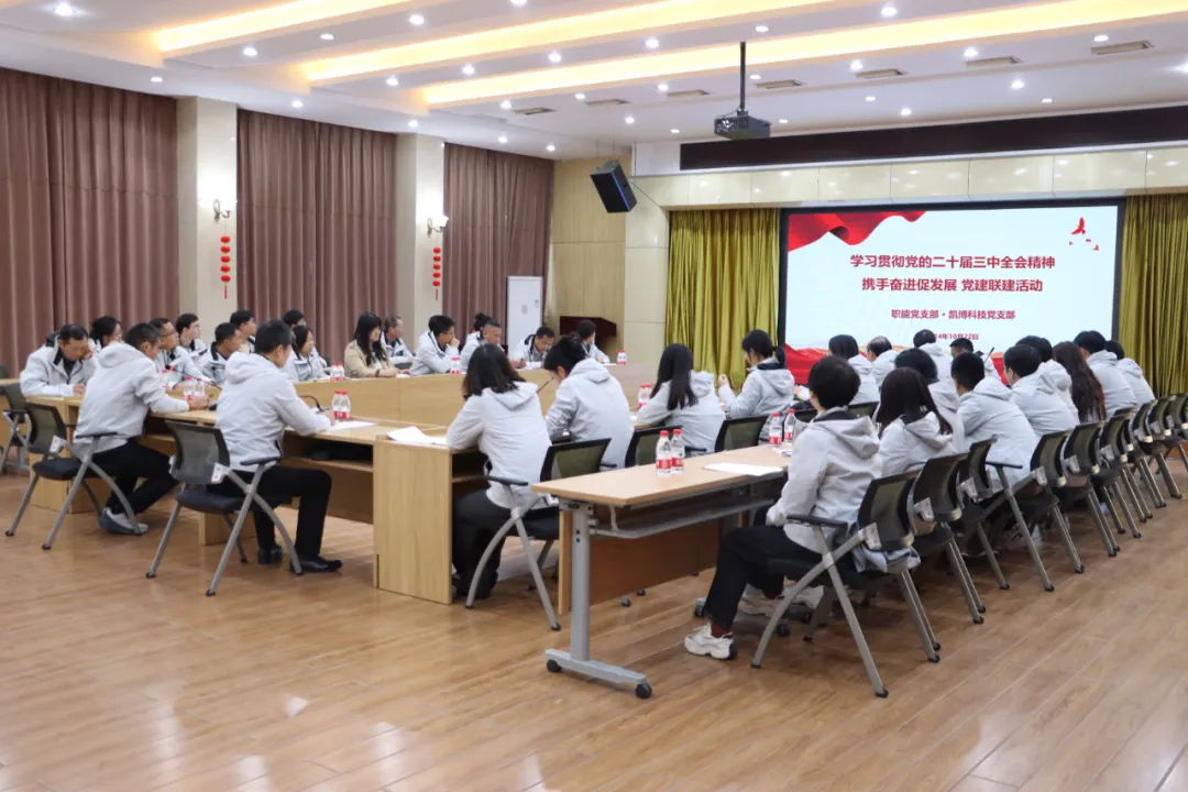 10月22日下午,北京建機(jī)院職能黨支部聯(lián)合凱博科技黨支部舉辦“學(xué)習(xí)貫徹黨的二十屆三中全會(huì)精神 攜手共進(jìn)促發(fā)展”黨建聯(lián)建活動(dòng)。北京建機(jī)院黨委委員、紀(jì)委書(shū)記呂振綱出席活動(dòng),黨委委員、總會(huì)計(jì)師楊如冰出席活動(dòng)并講授專題黨課。職能黨支部、凱博科技黨支部黨員、預(yù)備黨員、入黨積極分子、近三年入職的青年員工等40余人參加活動(dòng)。